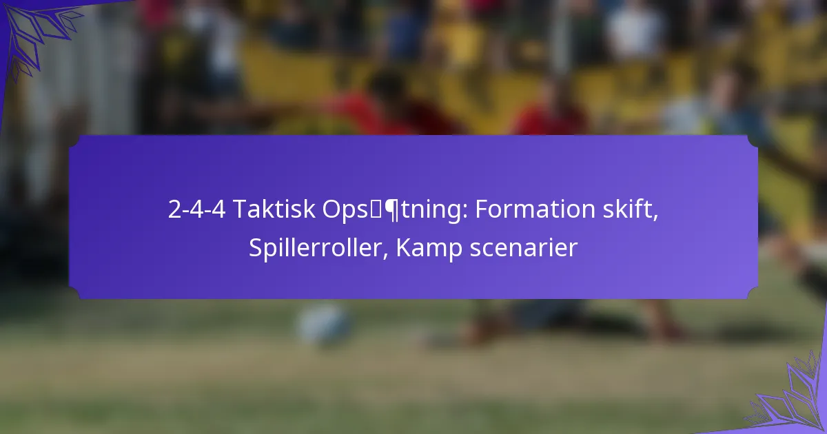 2-4-4 formationen er en dynamisk taktisk opstilling i fodbold, der prioriterer offensivt spil gennem et robust midtbane og en stærk angrebslinje. Forberedelse til kampe i denne formation kræver en dyb forståelse af spillerroller og strategier,… 2-4-4 Formation: Kampforberedelse, Scoutingrapporter, Taktiske øvelser